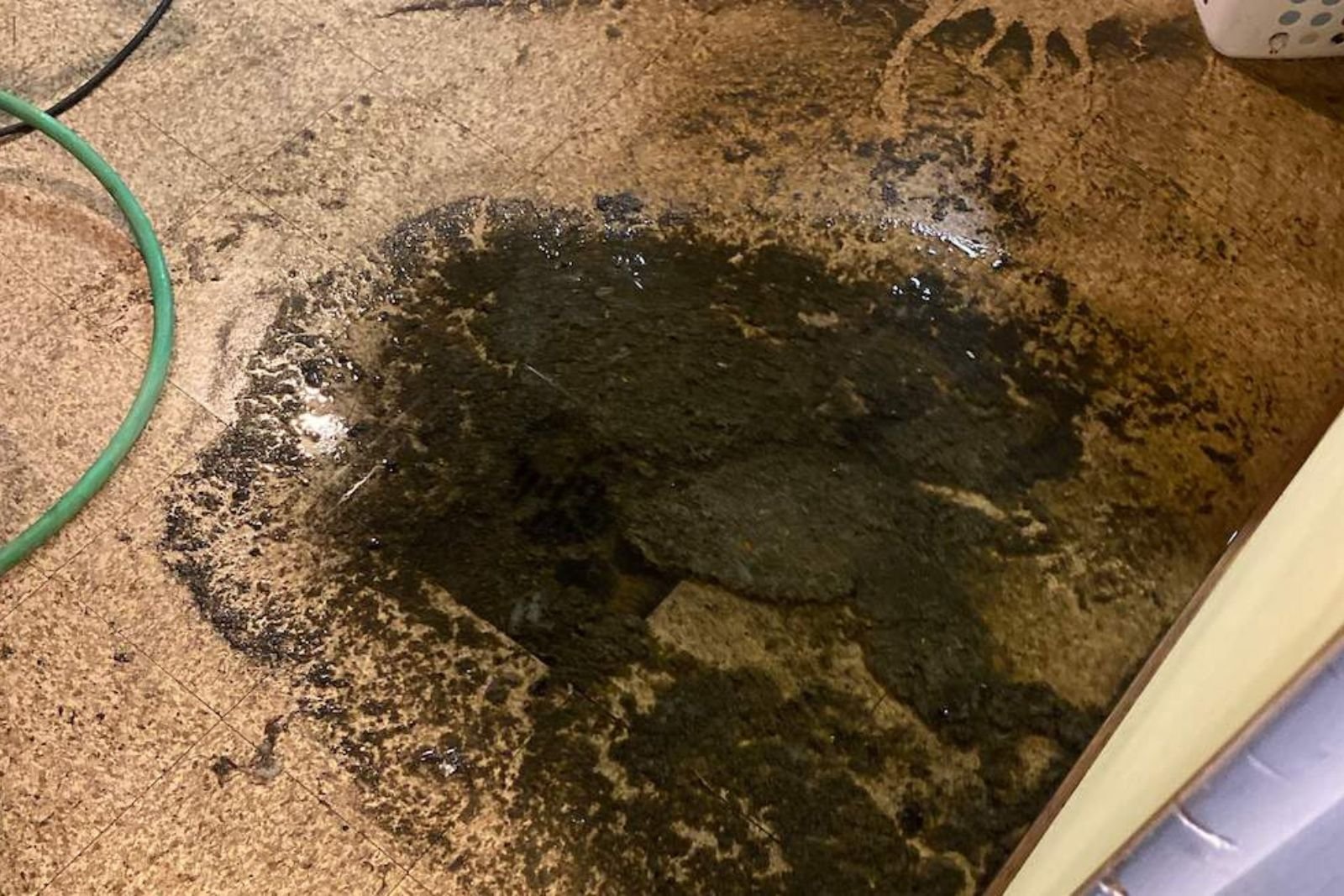This water might contain chemicals or dirt. It often comes from a washing machine or a dishwasher that overflowed.